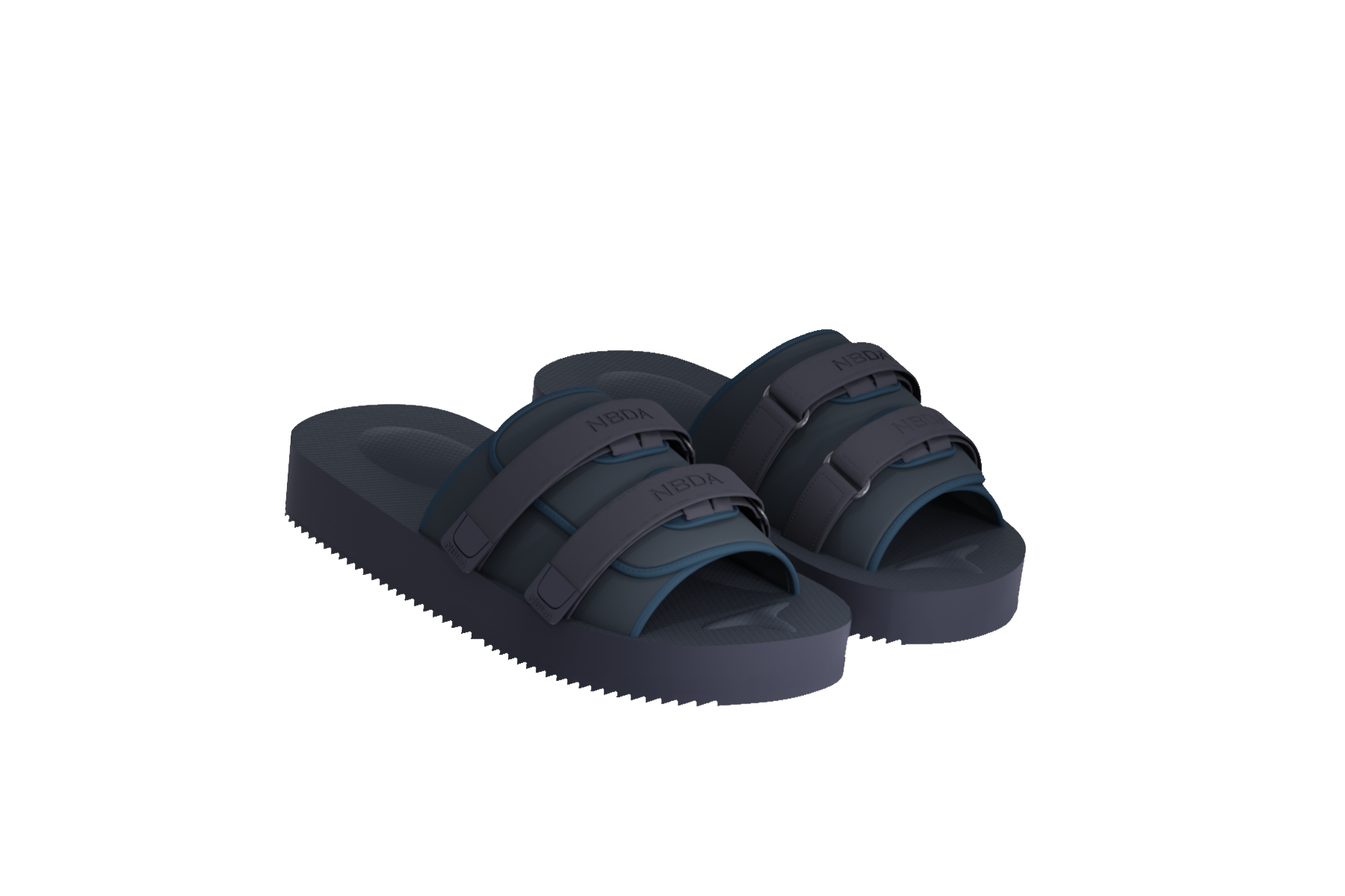 Electric Blue nylon buckled sandals with adjustable velcro straps and buckle closures. Rubber EVA outsoles and EVA footbed redesigned for added elegance and comfort.